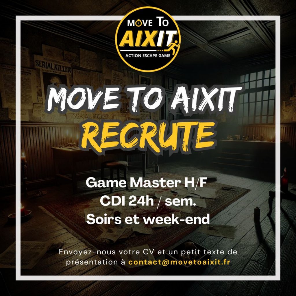 Chez Move To Aixit, nos salles d’Escape Game sont toutes de niveau intermédiaire qui s’adapte parfaitement aux débutants comme aux plus expérimentés. Vous avez du mal à avancer dans le jeu ? Rassurez-vous, votre Game Master vous aidera si vous en avez besoin. Vous avez une belle expérience en Escape Game ? Tant que vous avancez, votre Game Master n’interviendra pas.