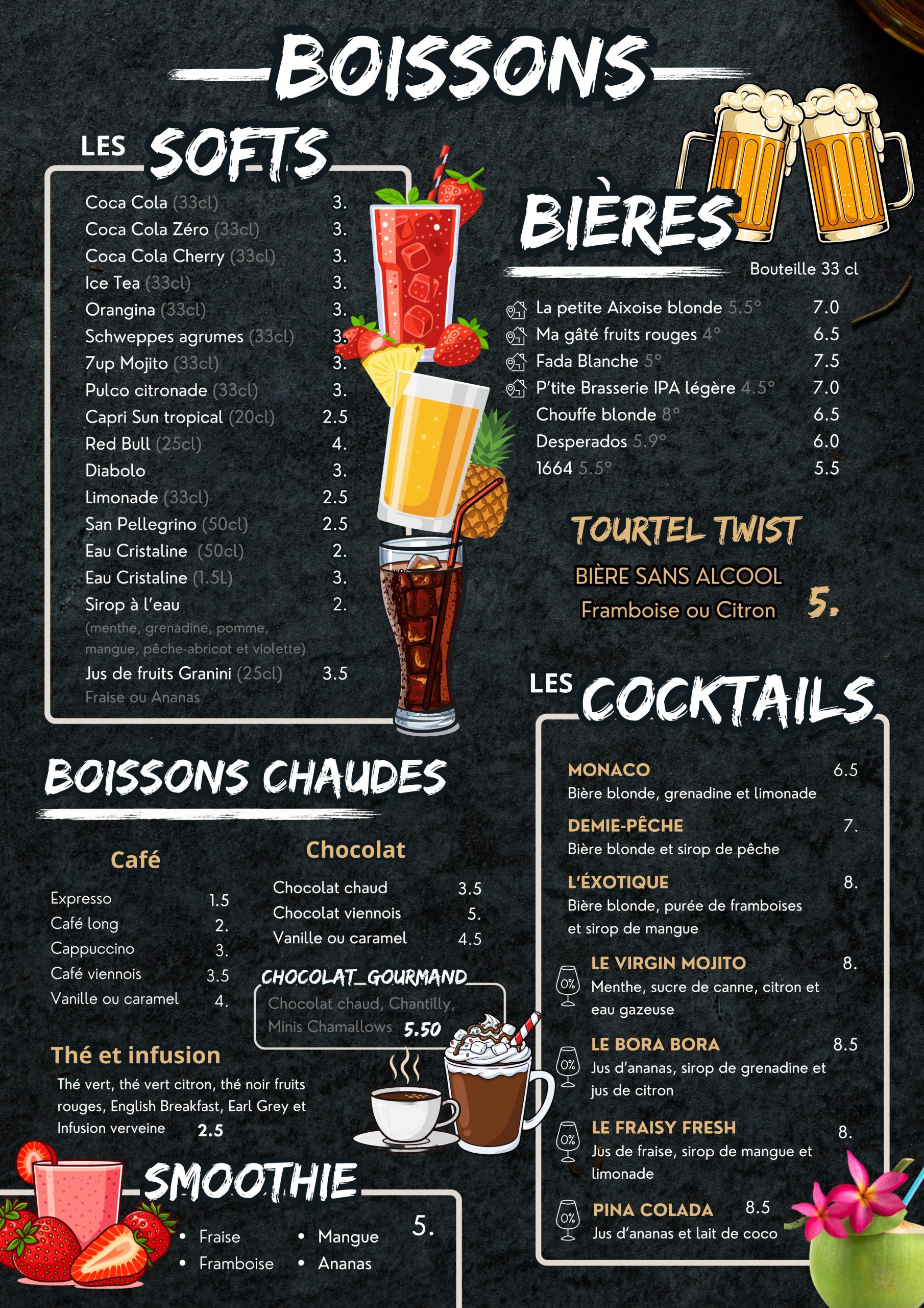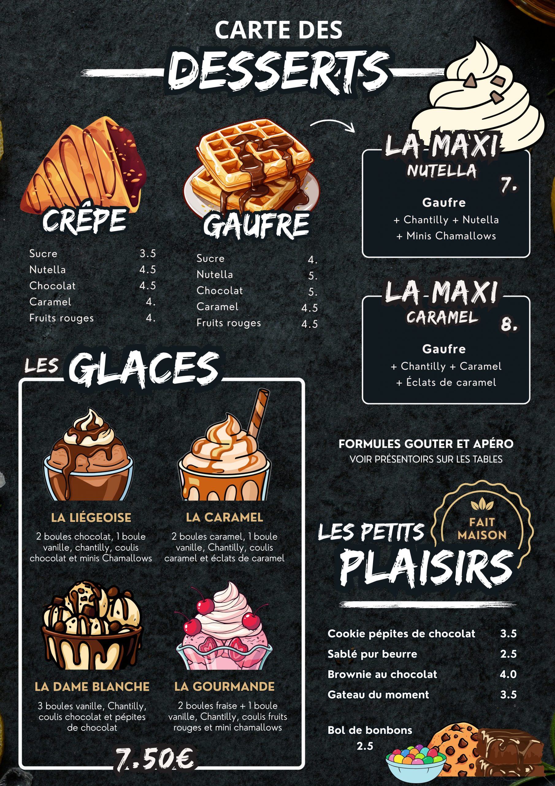 Nous proposons un lieu convivial où l’on peut boire, grignoter, jouer et se détendre. Profitez d’une boisson fraîche ou partagez une planche apéro, des tapas ou déguster une gaufre très gourmande !