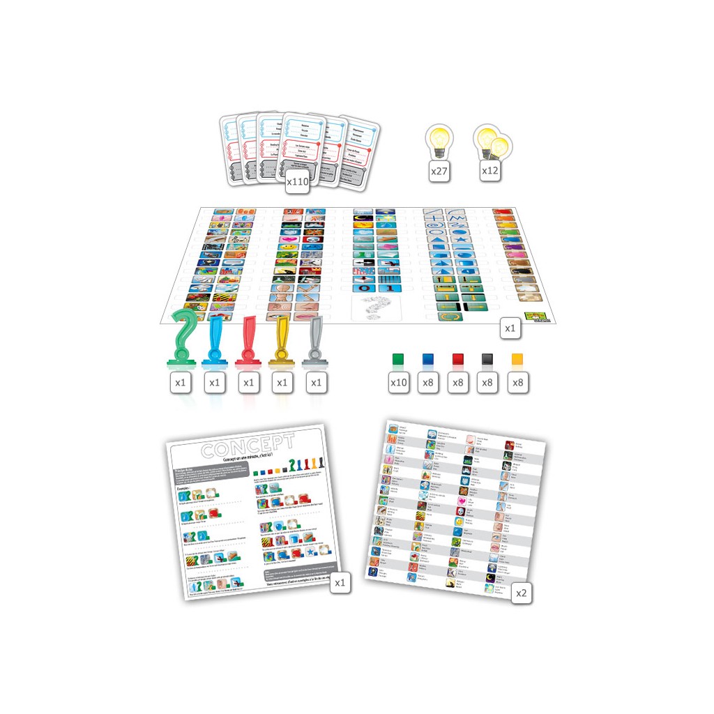 Concept est un jeu d’ambiance et de déduction où les joueurs doivent faire deviner un mot ou une expression en utilisant uniquement des icônes sur un plateau.