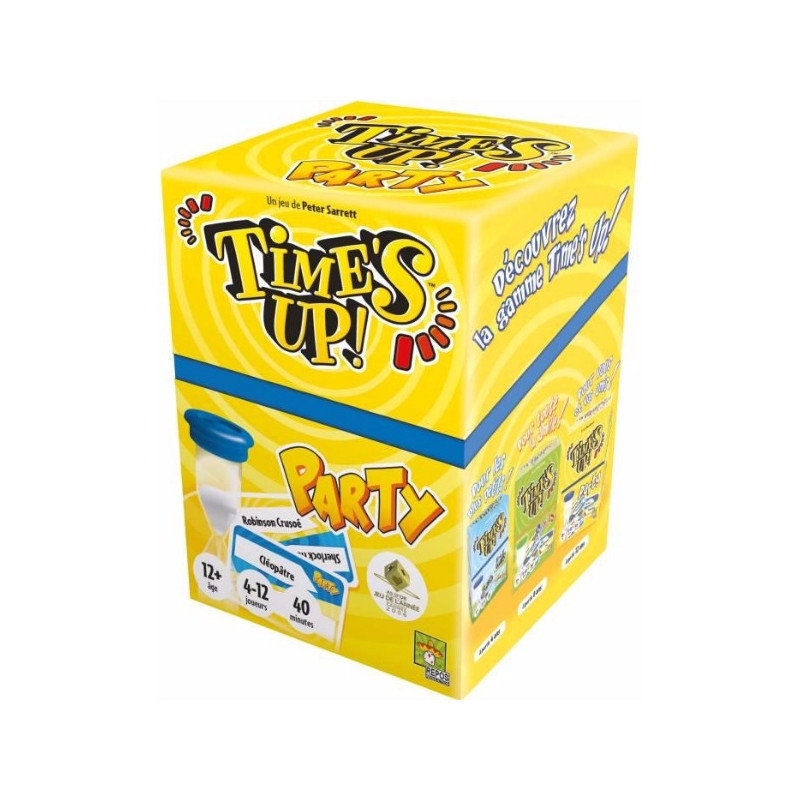 Time’s Up : Party est un jeu d’ambiance et de communication où les joueurs doivent faire deviner des personnages célèbres ou fictifs à leurs coéquipiers, d’abord librement, puis en utilisant un seul mot, puis uniquement des gestes.